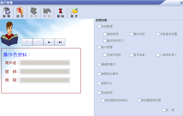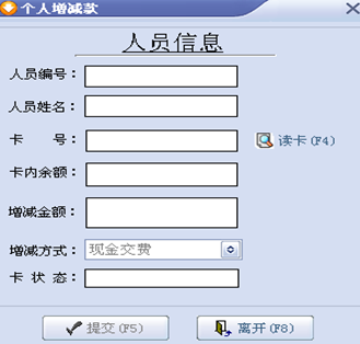 帐户管理可以对卡片的录入、修改、挂失、解挂、注销、回收等卡操作 6.4增减操作